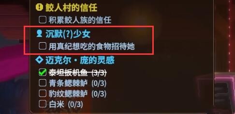 以上就是关于潜水员戴夫沉默的少女任务介绍的全部内容,潜水员戴夫沉默的少女任务怎么做,最后将做好的美食交给少女即可完成任务 。